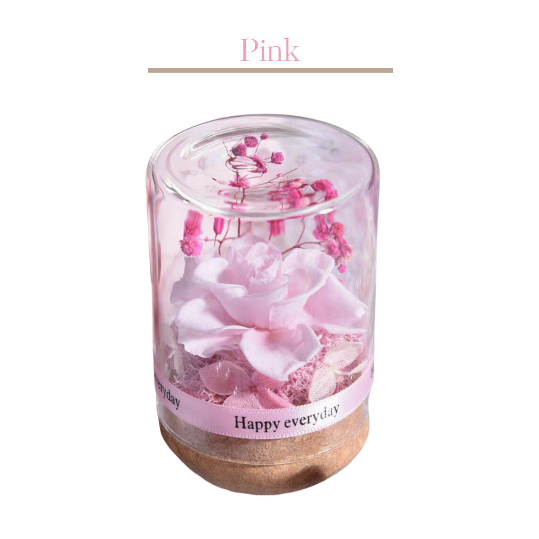 夜燈玻璃球永生花DIY材料包|粉紅色(玫瑰花)