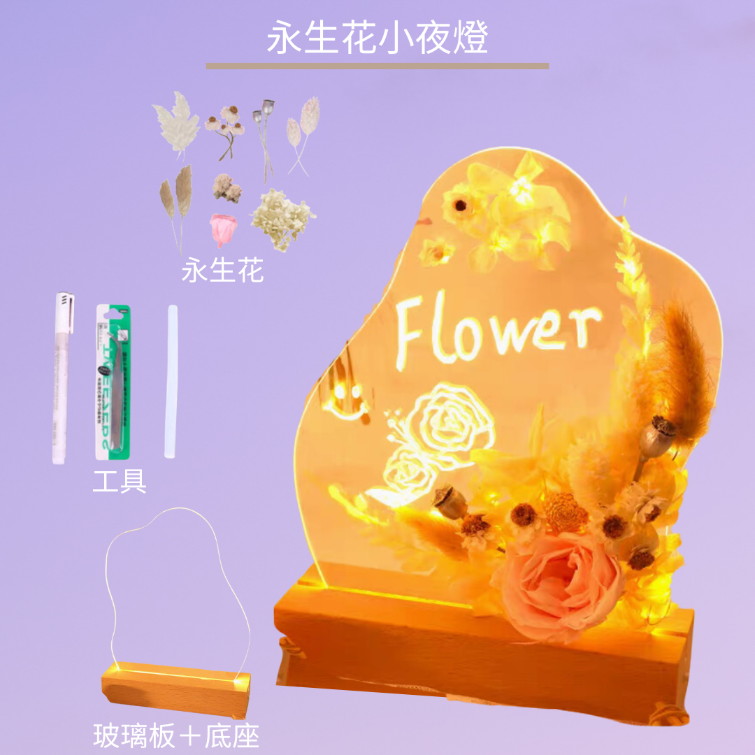 夜燈玻璃球永生花DIY材料包|粉紅藍色