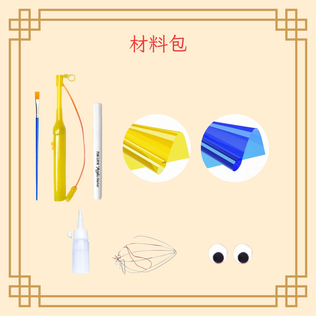 Material package: wooden frame, Lantern paper, Lanyard & Hemp Rope, Glue & Light, Wooden stick