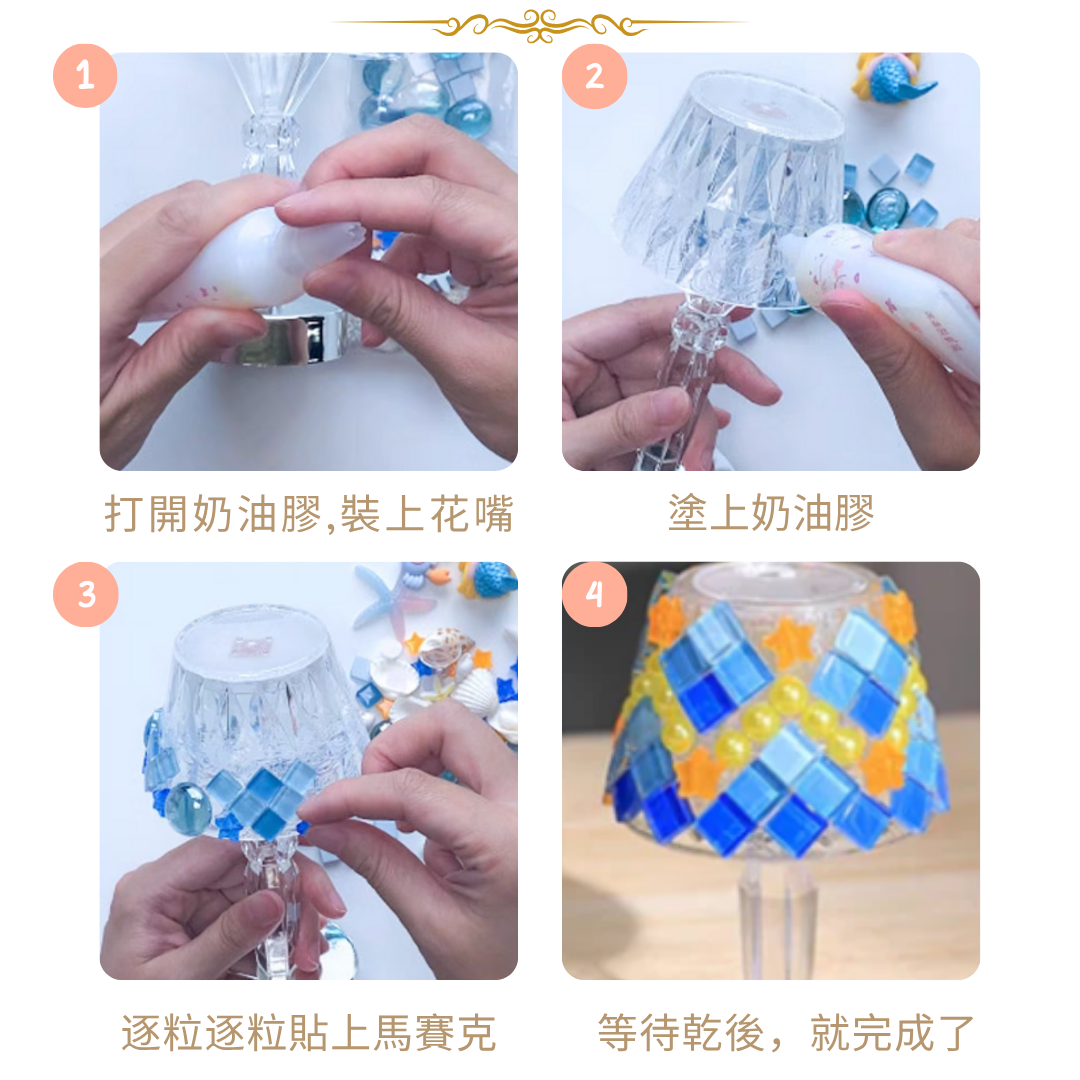 Material package: Caulking agent, Cream Glue, Mosaic, hemp rope, vase, Bowl and spoon, sponge