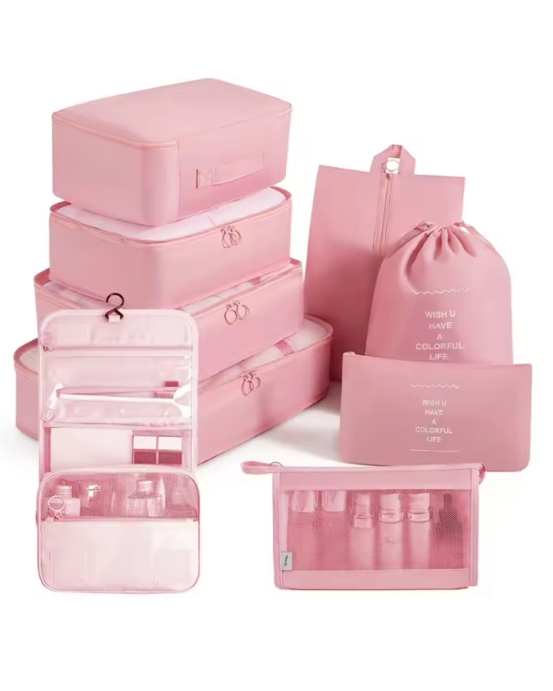 🧳 Effortless Organisation: Keep your clothes, shoes, and makeup neatly sorted with 9 versatile packing cubes.