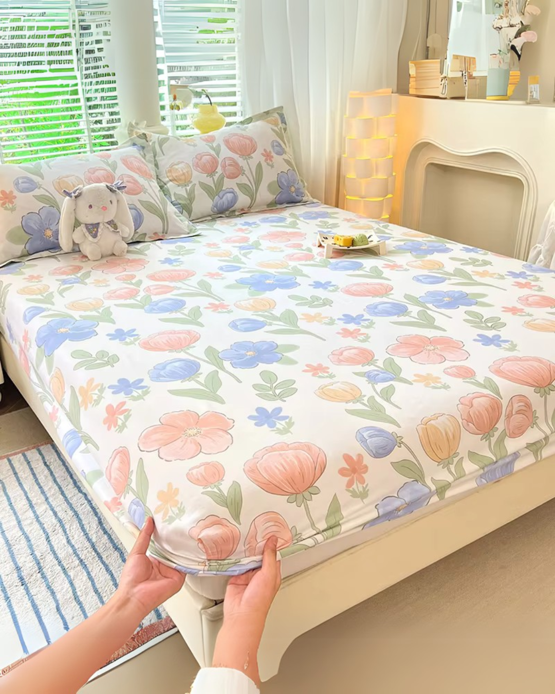 Floral Cotton Fitted Sheet | Soft & Elastic – Skin-Friendly Bed Linen for Home Comfort (No Pillowcase) |HomeHato