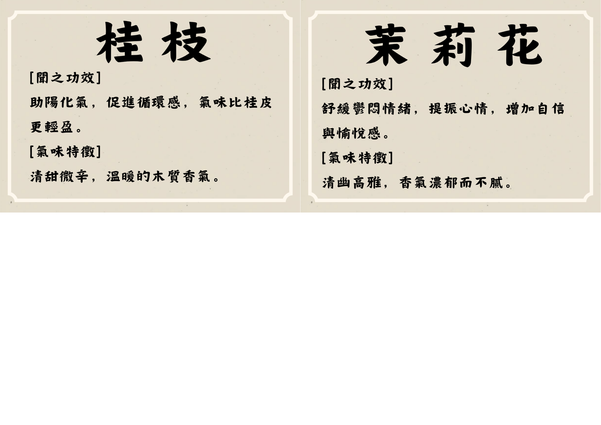 茉莉花:帶甜而不膩的花香,既可安撫情緒,又能舒解鬱悶,適合心情低落、容易悶悶不樂的人作為晚間舒壓的小幫手。