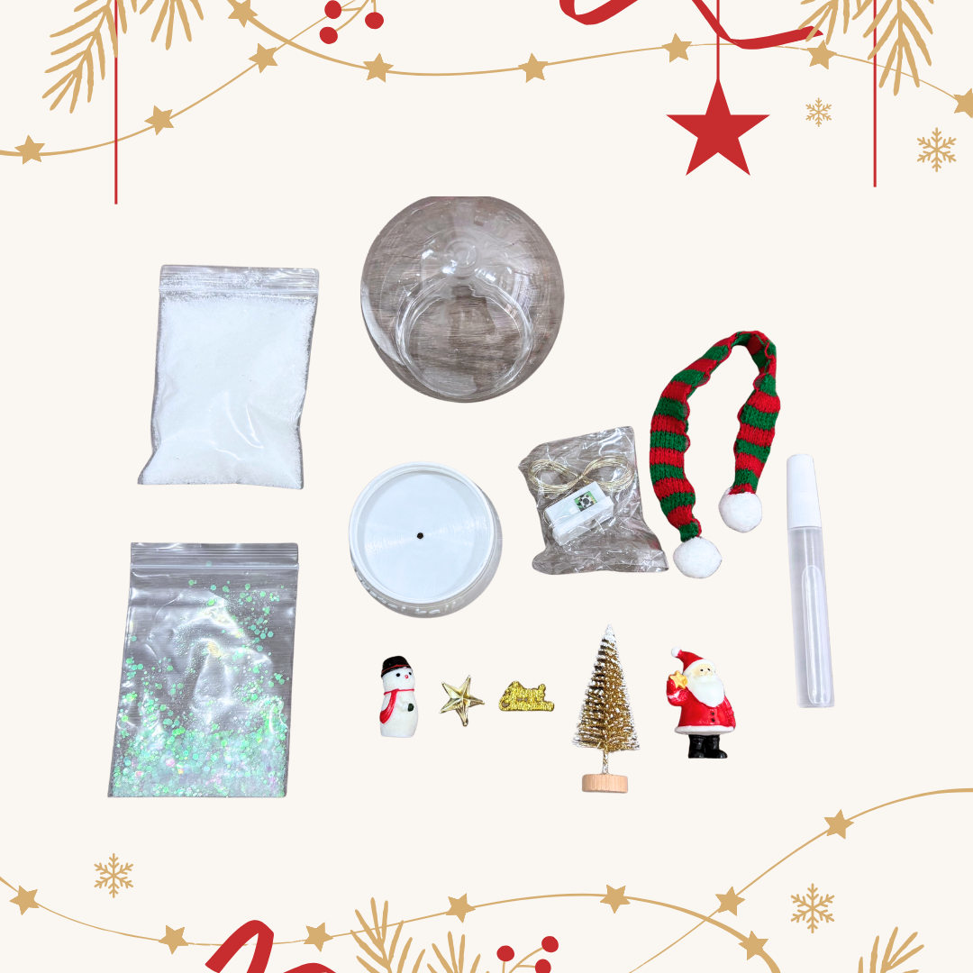 工具包:膠球x10, 燈條(已有需池)x10, 膠水x10, 雪粉x10, 閃粉x10, 小裝飾x10, 膠紙x10, 手提袋x10, 圍巾x10
